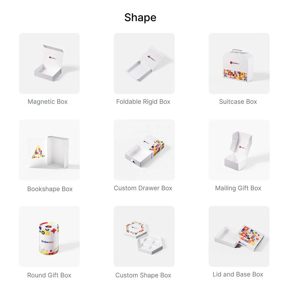 تُنتج Brothersbox صناديق ورقية هدايا حسب المقاس والسمك والشكل الدقيق المطلوبين — بأبعاد دقيقة تصل إلى الملليمتر، وسمك ورقي بمواصفات 1–3 مم أو حسب الطلب، وبتصاميم مثل الصندوق المغناطيسي، أو القابل للطي والصلب، أو على شكل حقيبة/بمقبض، أو على طراز الكتاب، أو الدرج، أو الصندوق البريدي، أو الدائري، أو الغطاء مع القاعدة، أو تصاميم مخصصة بالكامل مع فواصل داخلية. ونوفر نماذج التخطيط (dielines) والنماذج الأولية، ونقوم بالتصنيع بتقنية تحمل تسامحات ضيقة لتناسب تمامًا.