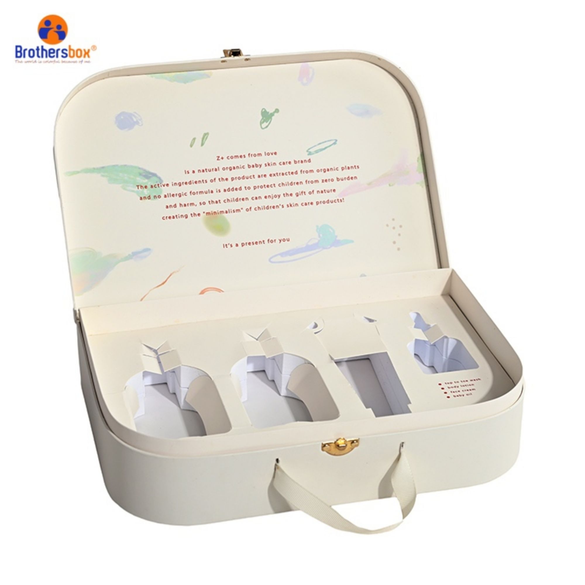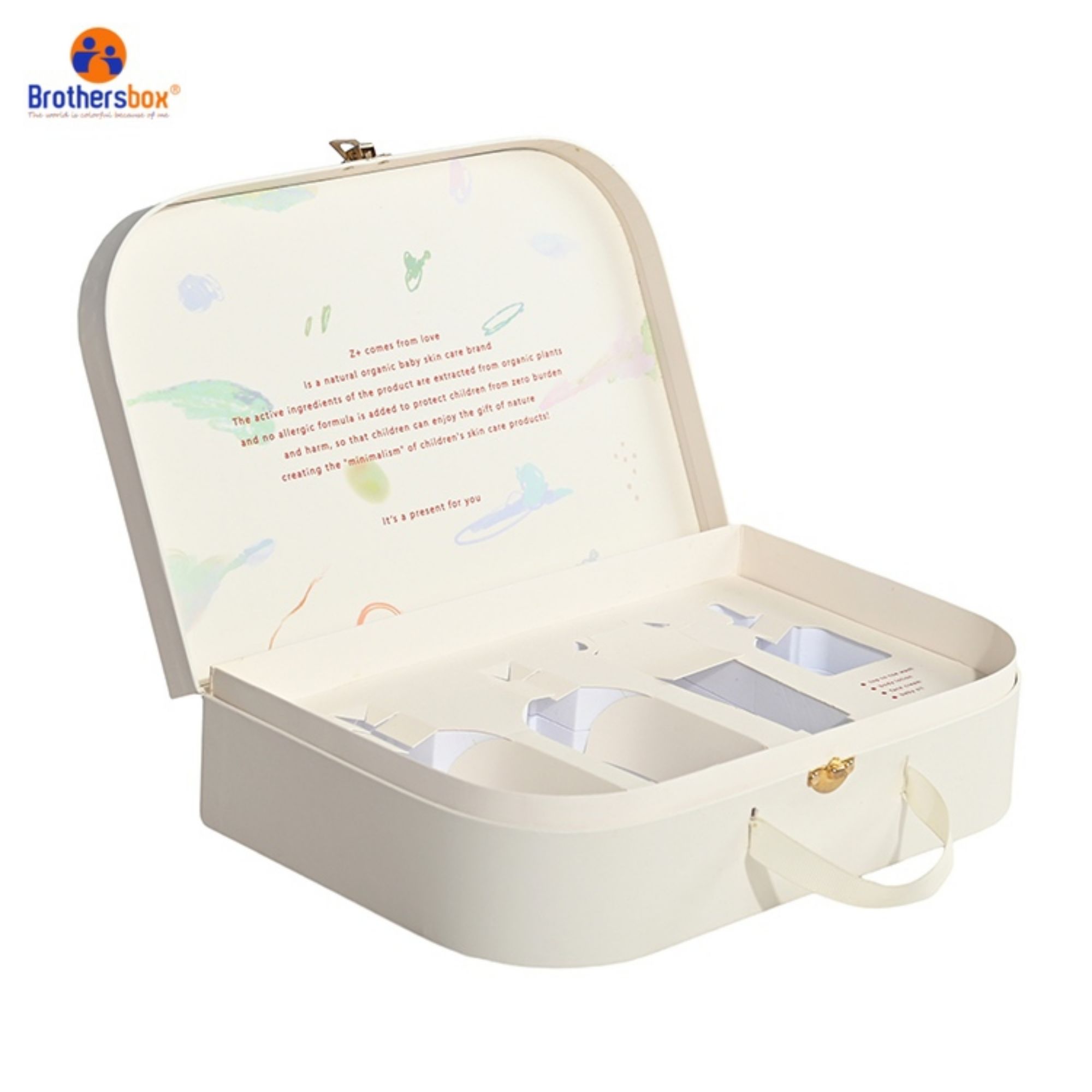 Brothersboxによる高級スーツケースタイプの化粧品・スキンケアギフトボックスを発見してください。ブランド向けにカスタマイズ可能なソリューションをご提供します。私たちの高級でエコフレンドリーなボックスとサイズに合わせたインサートで、スキンケア製品をさらに魅力的にしましょう。